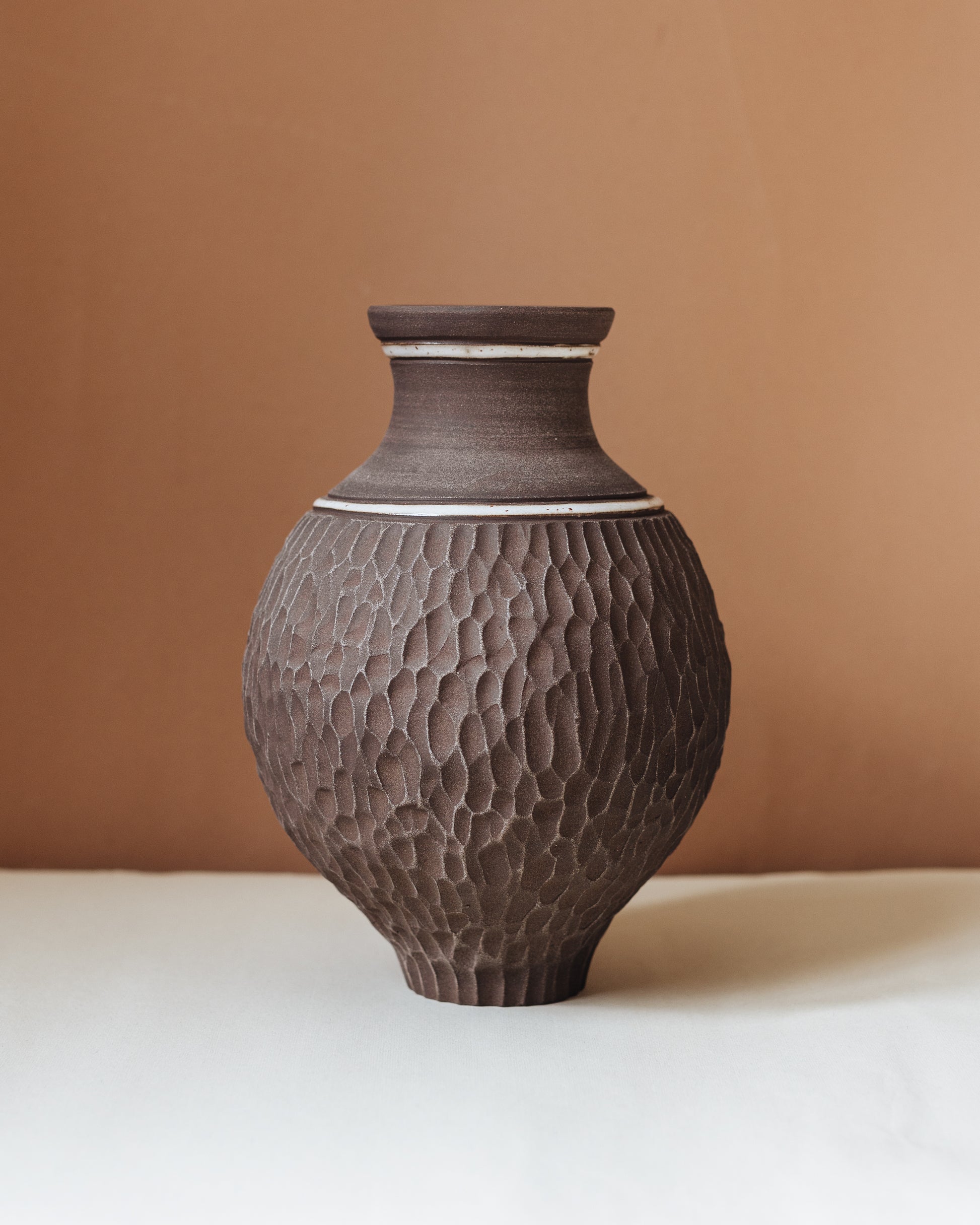 🥣 ITEM DESCRIPTION: Brown stoneware . Transparent glaze inside. Individually surfaced. This product is dishwasher, microwave and food safe. Perfect for tiny bouquets. Height 24cm. UNIQUE, one of a kind.