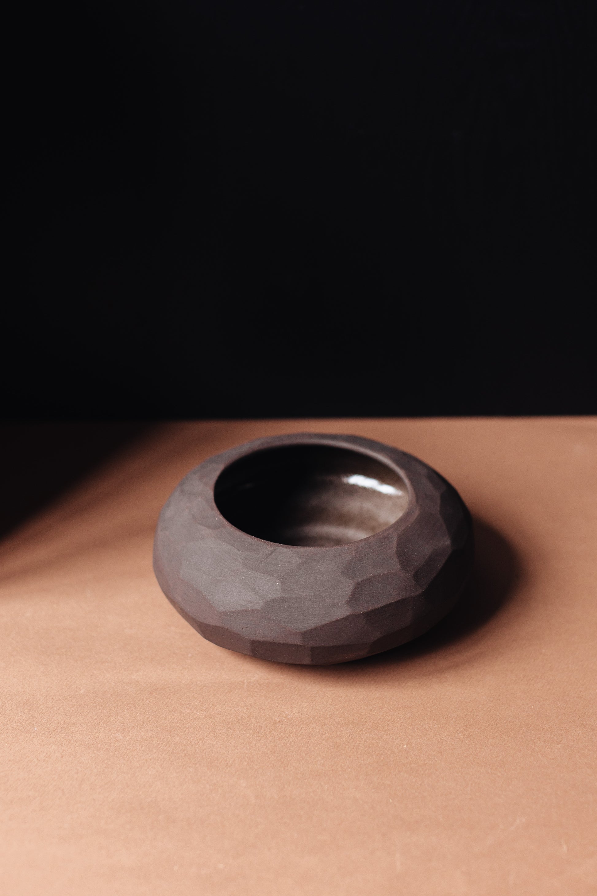 🥣 ITEM DESCRIPTION: Black stoneware . Transparent glaze inside. Individually surfaced. This product is dishwasher, microwave and food safe. Perfect for tiny bouquets. UNIQUE, one of a kind.