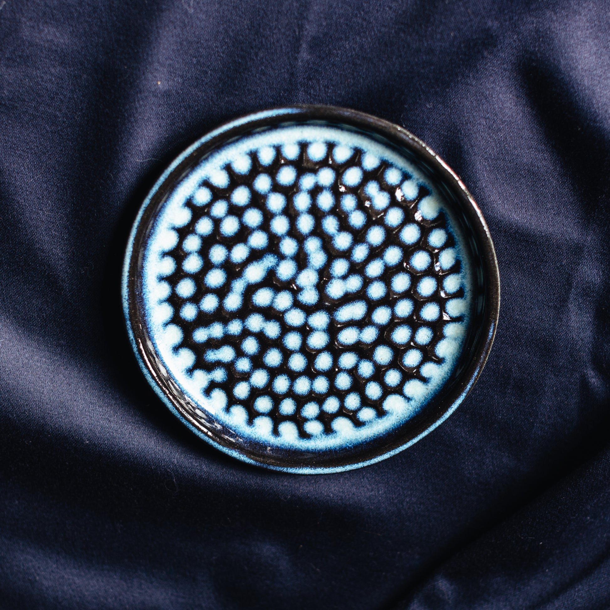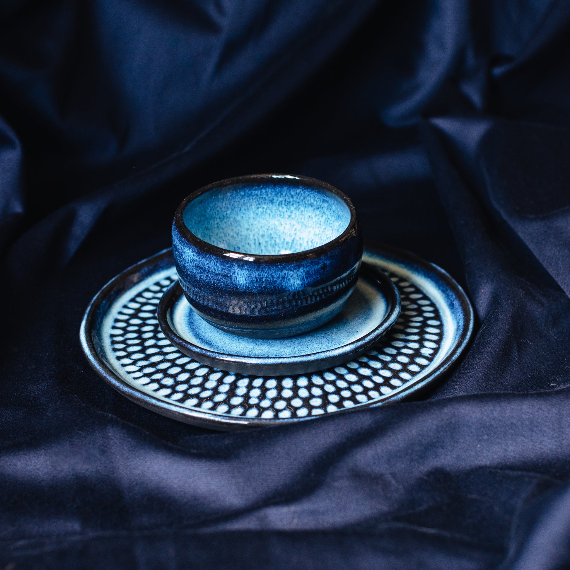 🥣 ITEM DESCRIPTION: Black stoneware, blue glaze. This product is dishwasher, microwave and food safe.