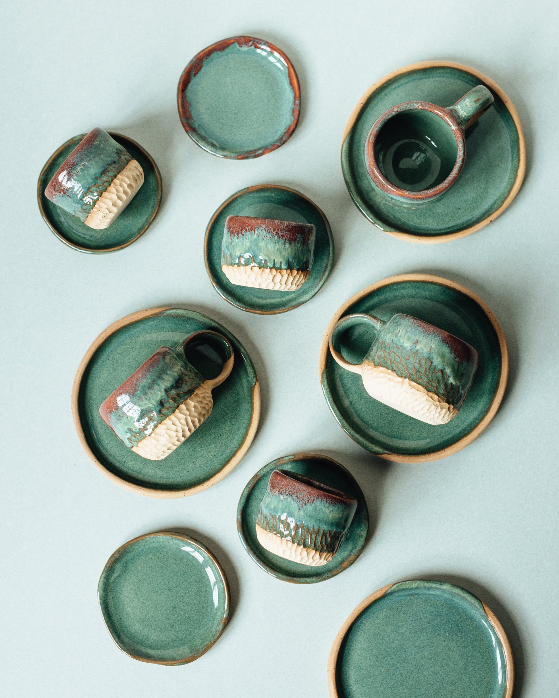 🥣 ITEM DESCRIPTION: Sandy stoneware clay with speckles. Green glaze outside. Diameter of plate is 12cm.