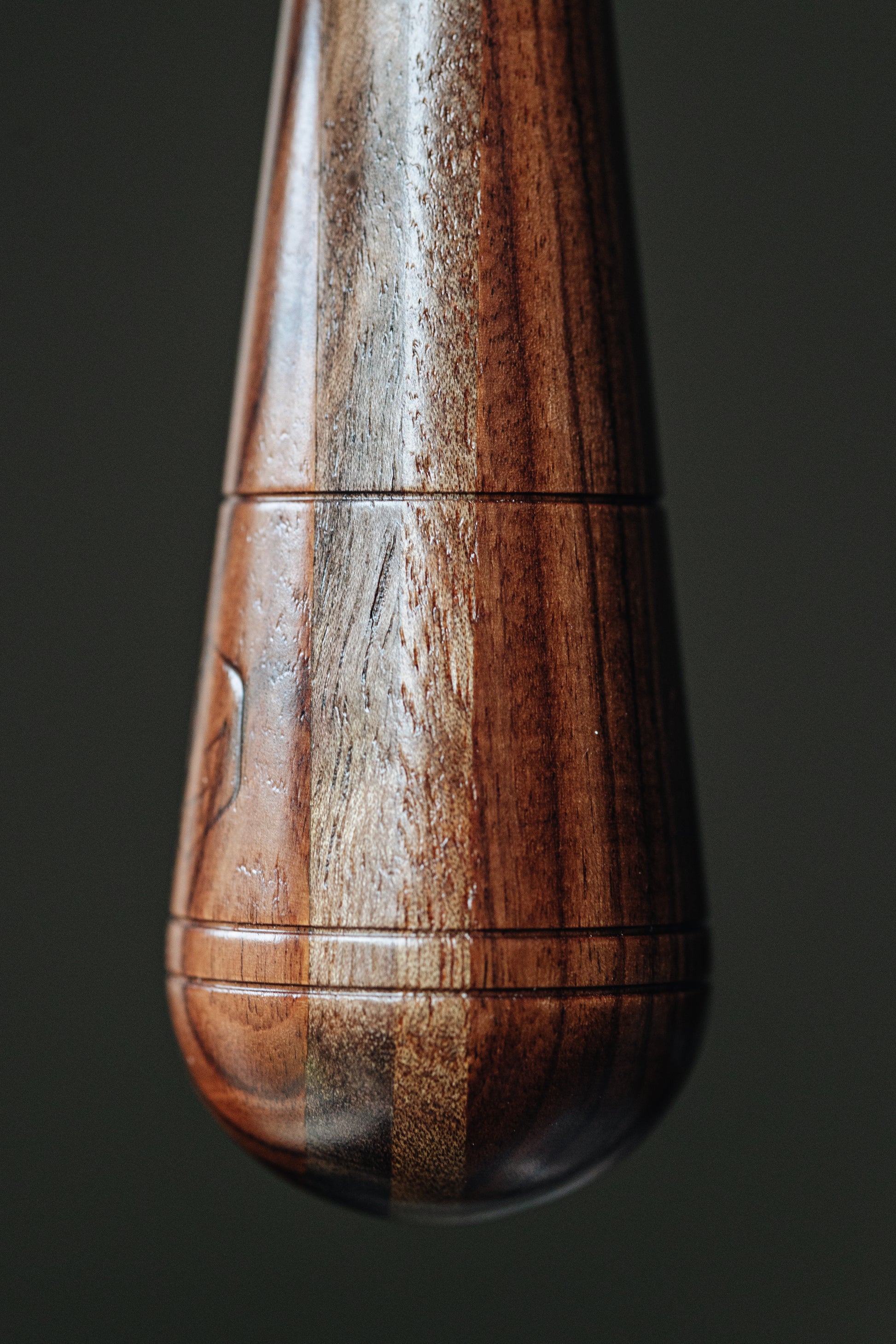 The handles are handcrafted from fine rosewood and walnut, polished and coated with a protective lacquer for a smooth, comfortable grip. Each handle is unique, displaying its own natural wood grain pattern and character.