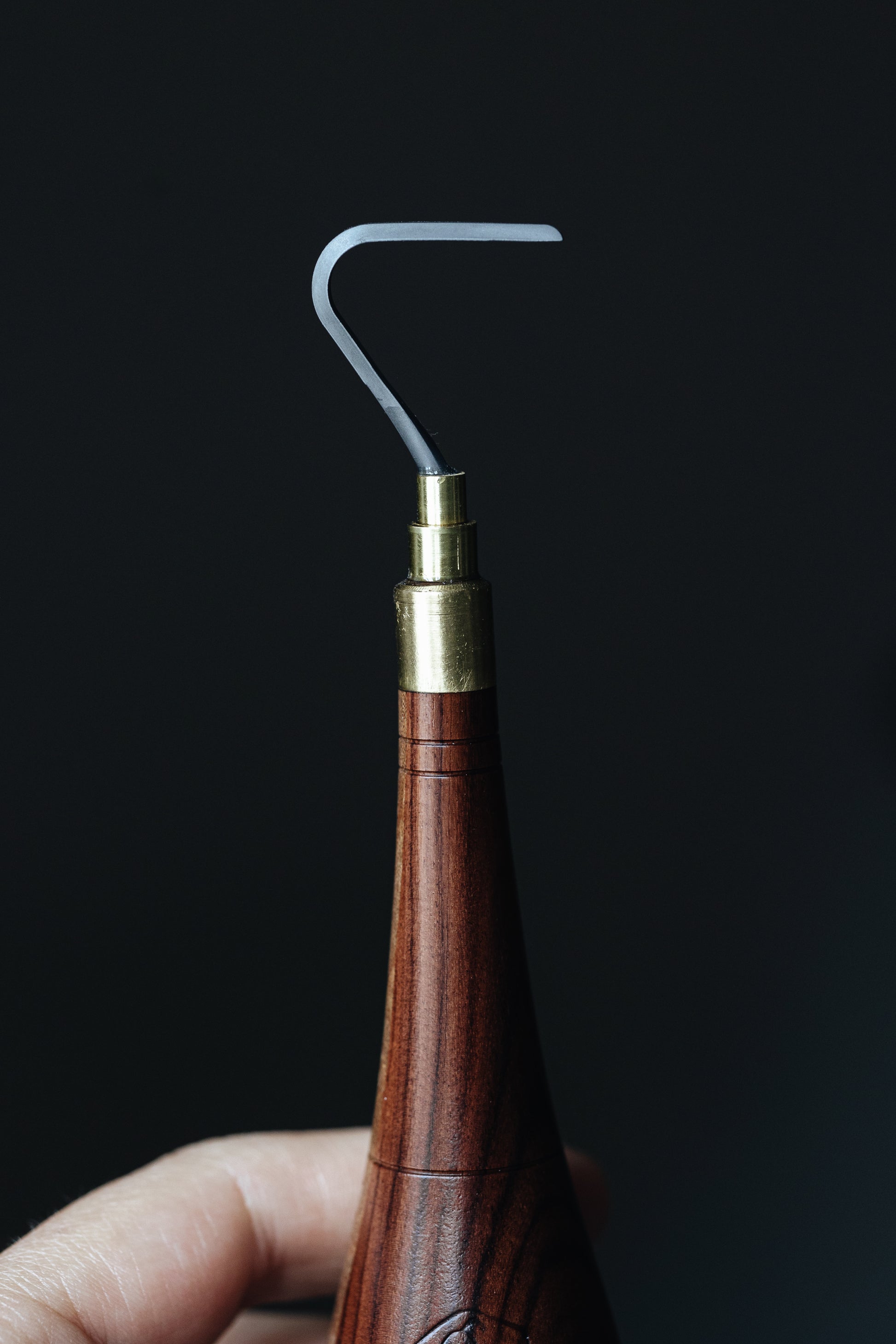 Elevate your pottery experience with this set of four precision-crafted trimming tools, each featuring a tungsten carbide cutting head, a solid brass neck, and a handmade wooden handle crafted from rosewood and walnut. Designed for both function and beauty, these tools make an exceptional addition to any potter’s studio — and a perfect gift for any ceramic artist.