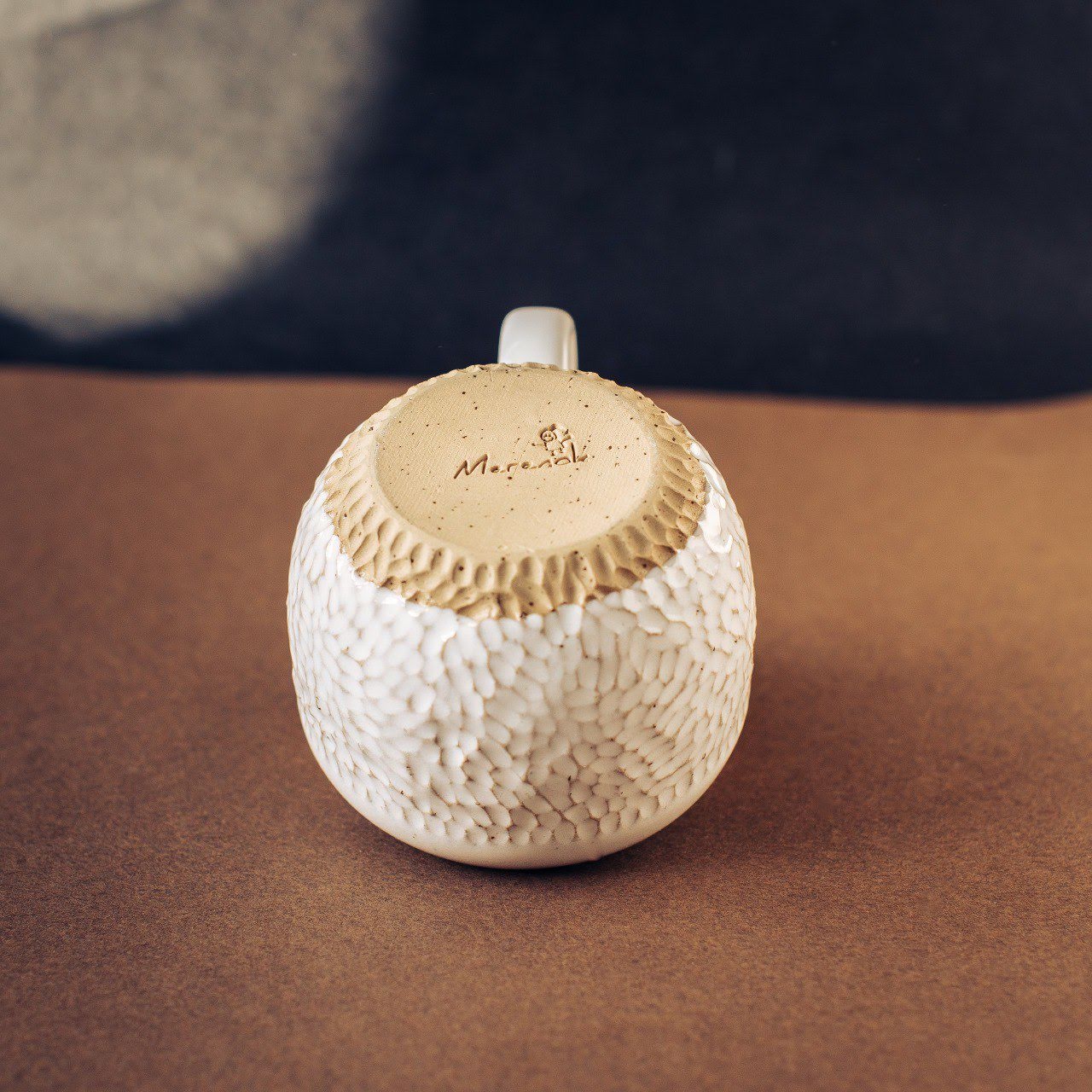 🥣 ITEM DESCRIPTION: Gray / Sandy stoneware with speckles. Ice-glossy glaze . Wheel-thrown cup ~350ml. Individually surfaced. Please choose the version with- or without handle. This product is dishwasher, microwave and food safe.